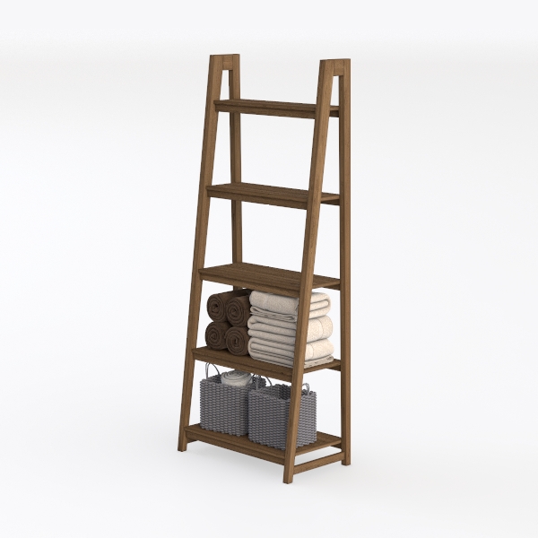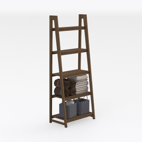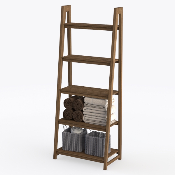 Inspired by rustic staircases, this freestanding shelf features a slanted design with warm, natural wood texture and rich brown hue, exuding a cozy, earthy vibe. Perfect for a Scandinavian or bohemian bathroom/bedroom, pairing beautifully with woven baskets and soft textiles. Sturdy and space-saving, its multiple tiers offer ample storage for towels, decor, or daily essentials.