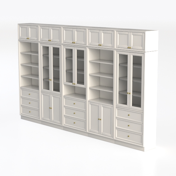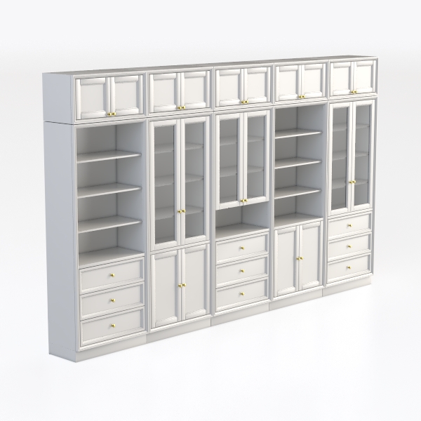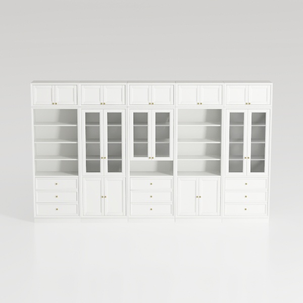 Crafted for timeless functionality, this elegant storage unit blends classic charm with modern simplicity. Sleek white surfaces, smooth matte finish, and light-catching gold handles create a clean, airy look. Ideal for modern minimalist living or home offices, it features spacious drawers and glass-fronted shelves, offering organized storage and elegant display space.