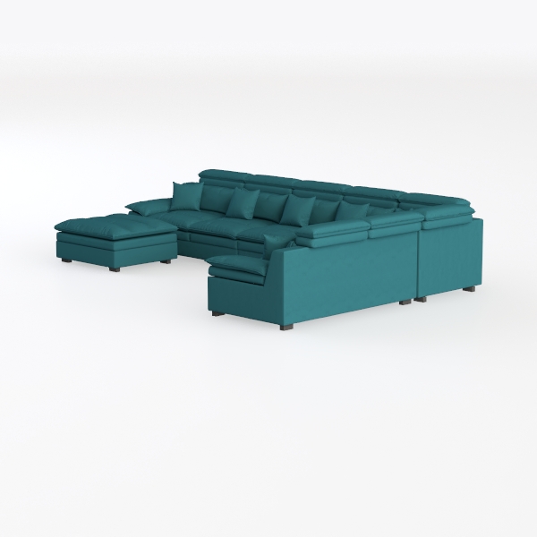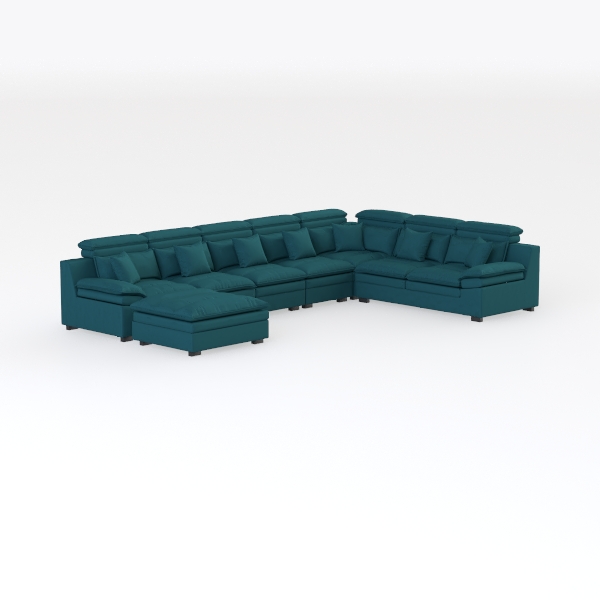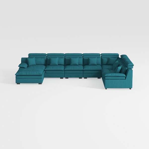 Pemberly Row 7 Piece Down Filled Overstuffed Sectional Sofa Set in Teal