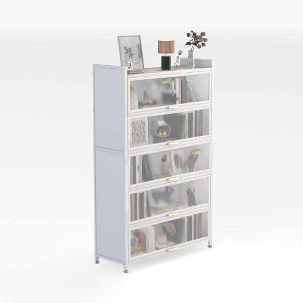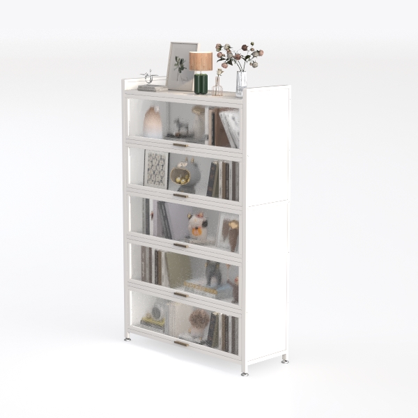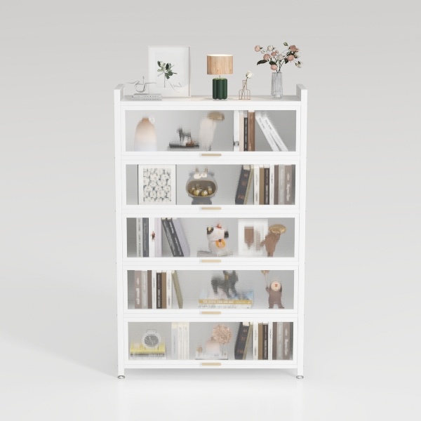 Inspired by minimalist design, this bookshelf balances clean lines and functional storage. Smooth white surfaces and transparent glass doors create a light, airy look, enhancing room openness. Ideal for modern living rooms or studies, pairing with warm wood tones and soft lighting for elegance. Spacious shelves and subtle drawer details offer ample storage for books, decor, and essentials, blending utility with style.