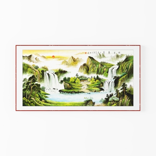 Slyart Large Nordic Green and White Abstract Vertical Wall Art