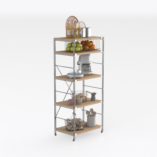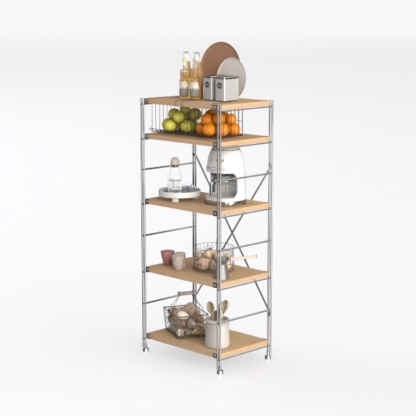 Inspired by minimalist functionality, this home rack blends warm wooden shelves with sleek metal frames, balancing natural warmth and modern simplicity. Soft wooden textures and smooth metal edges create a tactile, harmonious look. Ideal for modern, minimalist, or Scandi-inspired kitchens, it offers spacious tiers to organize fruits, appliances, and cookware, ensuring light, airy, and organized storage.