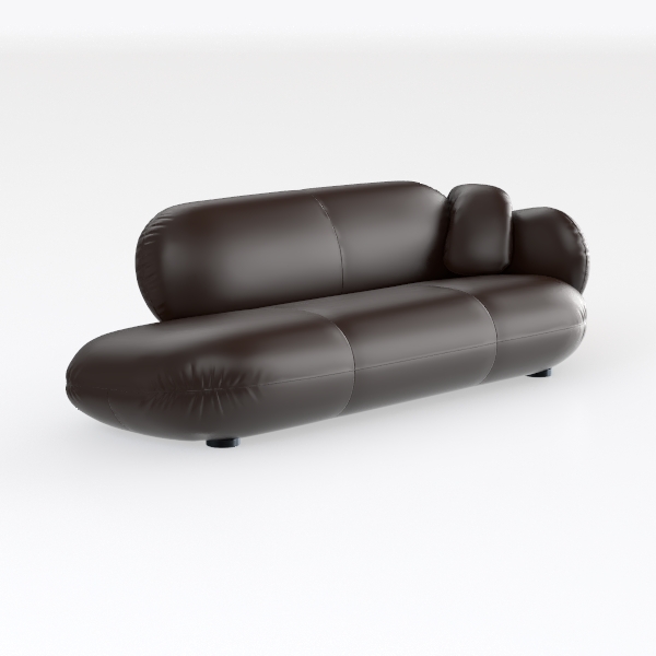 The deep, warm brown leather—with its buttery-soft texture and subtle, natural sheen—boasts a tactile richness that invites touch. Its plump, pillowed appearance creates a visually soothing contrast to sharp angles, making it a focal point that balances substance with approachability. The seamless, unbroken lines enhance its modern appeal, while the muted, earthy tone grounds the space with warmth.