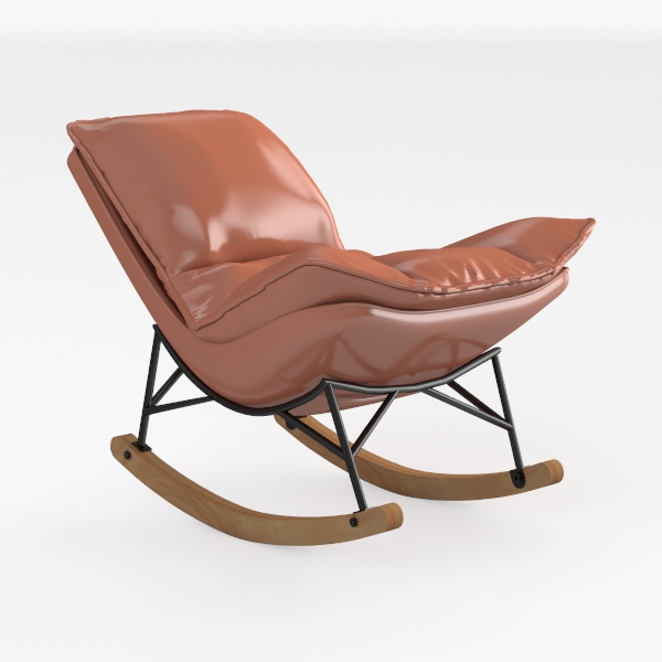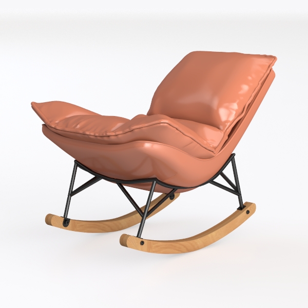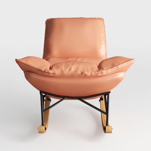 Inspired by soft, flowing curves, this armchair features smooth, supple peach leather with a warm matte finish, blending modern elegance and cozy allure. Its generous seat depth and gentle rocking motion cradle you in comfort, ideal for modern minimalist or Scandinavian living rooms—pair with oak side tables and black metal accents for a balanced, inviting vibe.