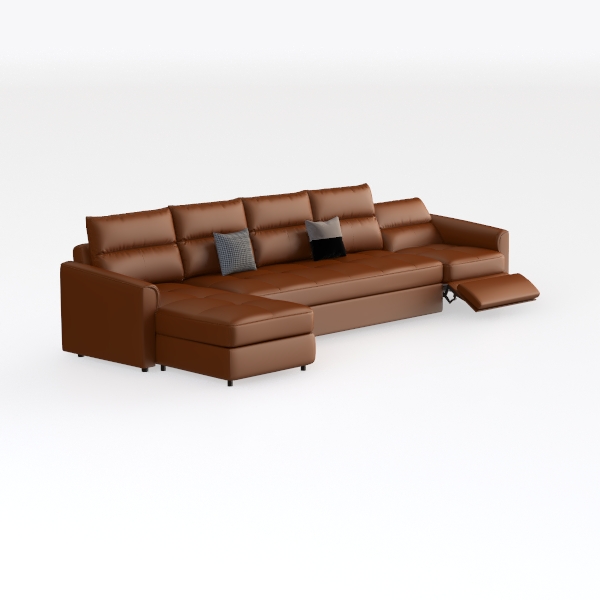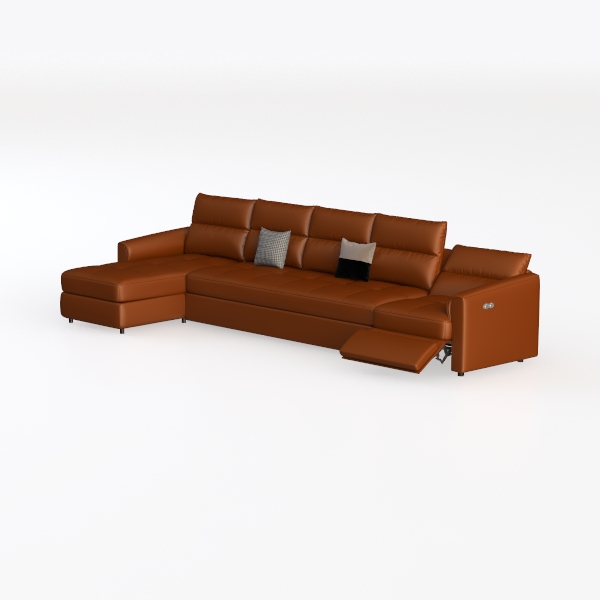 This elegant L-shaped sofa draws inspiration from the harmonious blend of mid-century modern aesthetics and natural warmth, aiming to create a space that feels both timeless and inviting. Its rich, terracotta hue—reminiscent of polished ceramic or sun-baked clay—sets a cozy, grounding tone, while the clean, uncluttered lines of its frame reflect a commitment to understated sophistication.