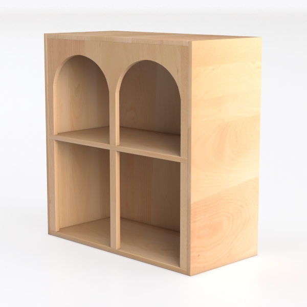 Inspired by architectural archways, this wooden shelf has two curved upper sections and two square lower compartments. Crafted from smooth, natural wood with visible grain patterns, it radiates warmth and minimalist charm. Perfect for a Scandinavian or modern living room, it pairs beautifully with potted plants, books, or decorative items, while four compartments offer ample storage with a sturdy, practical design.