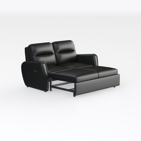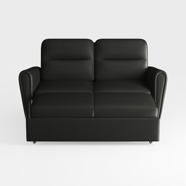 The smooth, high-quality upholstery feels cool and tactile—its matte black finish catching light softly, while the leather-like texture offers a luxurious yet easy-to-clean surface. Visually, the sofa commands attention with its understated presence: the low-profile, tapered legs ground it stably, while the seamless integration between back and seat cushions creates a cohesive, unbroken form that feels both contemporary and timeless.
