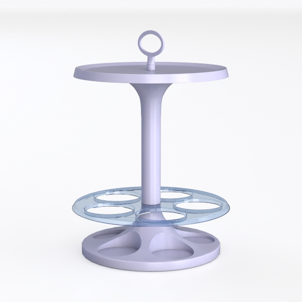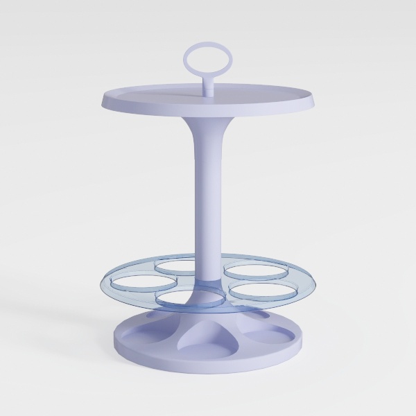 Blending organic curves with modern minimalism, this piece features a smooth matte lavender top with a central ring handle, paired with a transparent glass lower shelf that securely holds cups. The lightweight glass contrasts softly with the solid base, enhancing its airy feel. Ideal for a modern Scandinavian or minimalist living room, it complements sleek surfaces and metallic accents, with the weighted base ensuring stability for daily use.