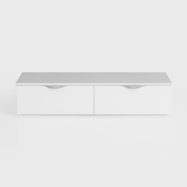 Designed with minimalist aesthetics, drawing inspiration from clean architectural lines and functional simplicity. Its smooth, matte white surface feels soft and warm, with subtle curved handles adding gentle flow. Crisp and uncluttered, it brightens spaces, enhancing openness. Perfect for modern living rooms or compact bedrooms, pairing well with sleek sofas, wooden floors, and potted plants. Two deep drawers offer ample storage, keeping essentials neat—an elegant, practical home essential.