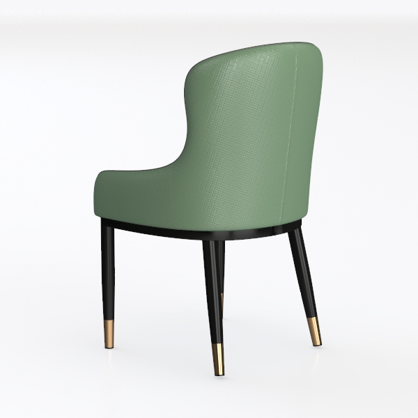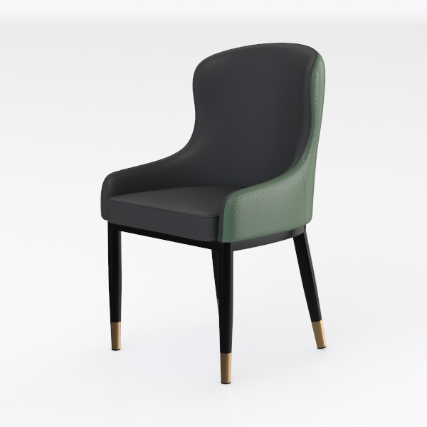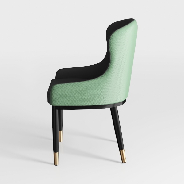 Inspired by organic silhouettes, this chair blends soft curves with geometric precision. The mint-green textured upholstery offers a tactile softness, while matte black armrests and gold-accented legs add sleek contrast. Ideal for modern minimalist or contemporary dining rooms, it pairs beautifully with marble tables and metallic light fixtures. Its contoured backrest and sturdy frame ensure optimal comfort, balancing style and practicality.