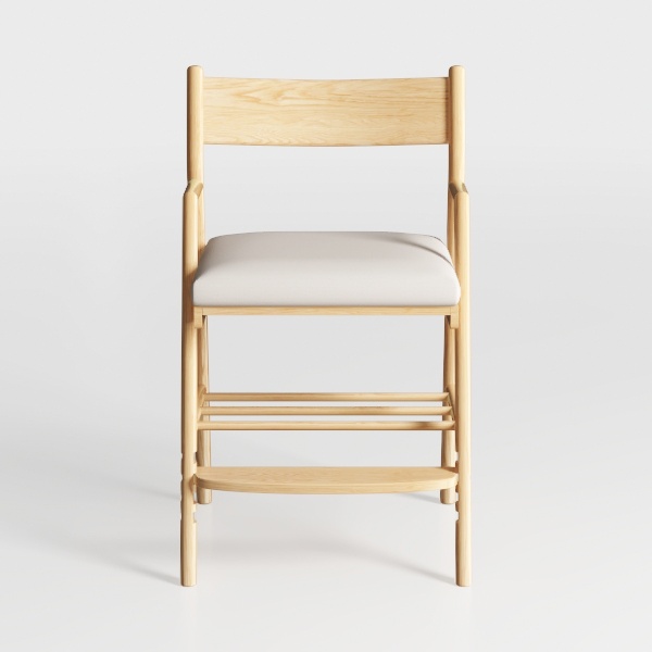 Inspired by Scandinavian minimalism, blending natural elements with clean lines, this chair features a warm oak wood frame exuding a smooth, tactile feel. The light, neutral upholstery adds softness to its clean, airy aesthetic, ideal for a modern minimalist dining room or cozy living space. The lower shelf offers extra storage, and the curved seat ensures ergonomic comfort for long sitting.