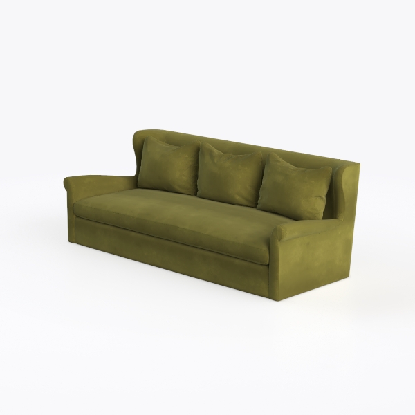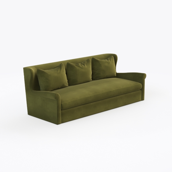 This sofa embodies a harmonious blend of natural inspiration and timeless design, drawing cues from organic textures and mid-century modern aesthetics. Its deep olive hue, reminiscent of sun-drenched olive branches, infuses any room with earthy warmth, while the soft, plush fabric—with a subtle sheen—invites gentle touches, making it as tactilely appealing as it is visually striking.