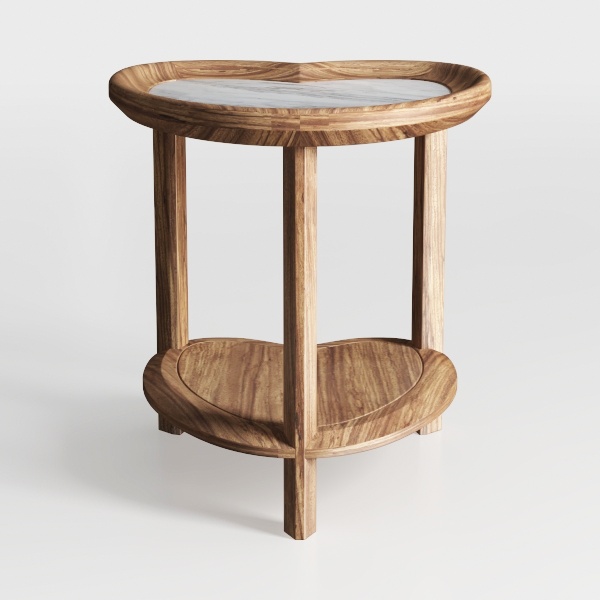 Inspired by soft, organic curves, this side table merges warm wood grain with a smooth marble top. Its tactile wood tones exude coziness, while the marble adds subtle elegance. Ideal for modern minimalist or Scandinavian living rooms, it pairs beautifully with soft textiles and metal accents. The lower curved shelf offers extra storage, and stable, slender legs ensure sturdiness, balancing style and practicality.