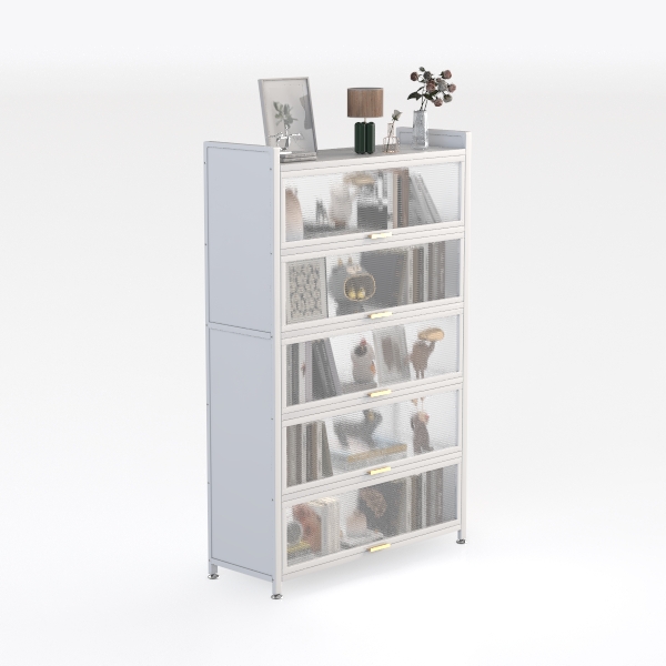 Inspired by minimalist living, it merges storage and display. Sleek white frames and transparent glass doors create a light, airy feel, with internal shelves holding books, decor, and small trinkets. Perfect for modern or Scandinavian-style living rooms/studies, pairing beautifully with wood/metal accents. Multiple layers offer ample storage, glass doors protect items while showcasing your collection.