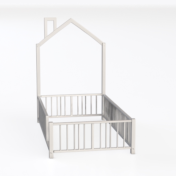 Twin Size Metal House Platform Bed with Guardrail and Chimney, White