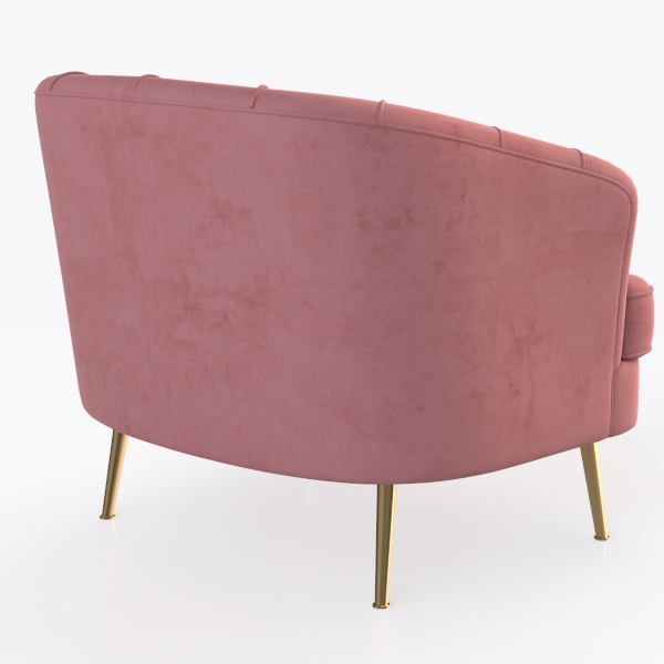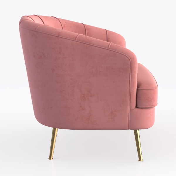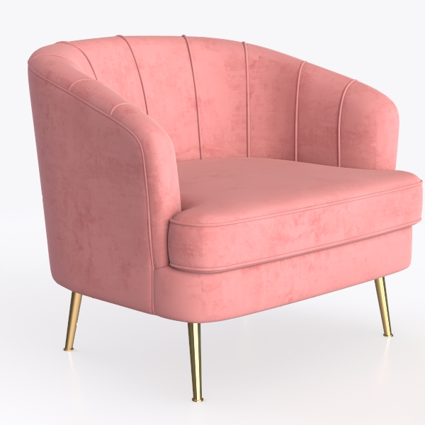 This elegant armchair draws inspiration from the soft interplay of dawn’s blush tones and the clean lines of mid-century modern aesthetics, merging nostalgia with contemporary allure. Its main feature is a plush velvet upholstery in a warm, muted pink hue, which feels as luxurious as it looks—silky to the touch with a subtle sheen that catches light gently, adding depth to any room. The curved armrests and gently sloped backrest create a sense of organic flow, softening the silhouette while the structured tufting along the top edge adds a touch of classic refinement.