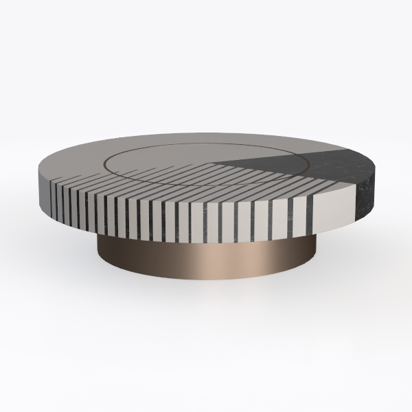 Inspired by geometric abstraction and natural stone patterns, this circular table features a sleek marble top with clean black-and-white stripe detailing. Smooth to the touch and visually striking, its balanced design pairs beautifully with modern minimalist living rooms—ideal with metal floor lamps and neutral sofas. A sturdy gold base ensures stability, while the circular form maximizes space without sacrificing style.