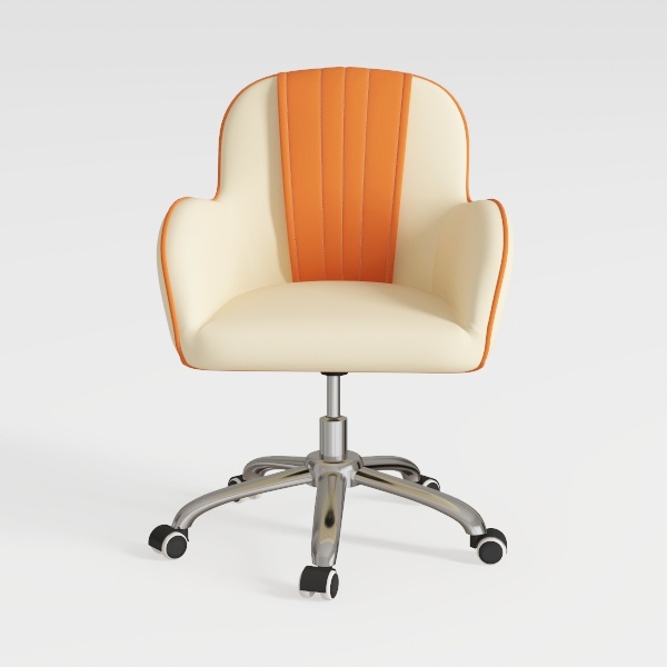 Crafted with mid-century modern charm, this chair blends retro flair with contemporary comfort. Its smooth, buttery-soft upholstery—cream base with a warm orange backrest—creates a vibrant yet balanced look, while clean, sculpted lines add visual appeal. Perfect for a sleek home office or cozy living nook, it pairs beautifully with wooden desks or marble side tables, enhancing modern minimalism. A swivel base ensures easy movement, and the generously padded seat offers all-day comfort.