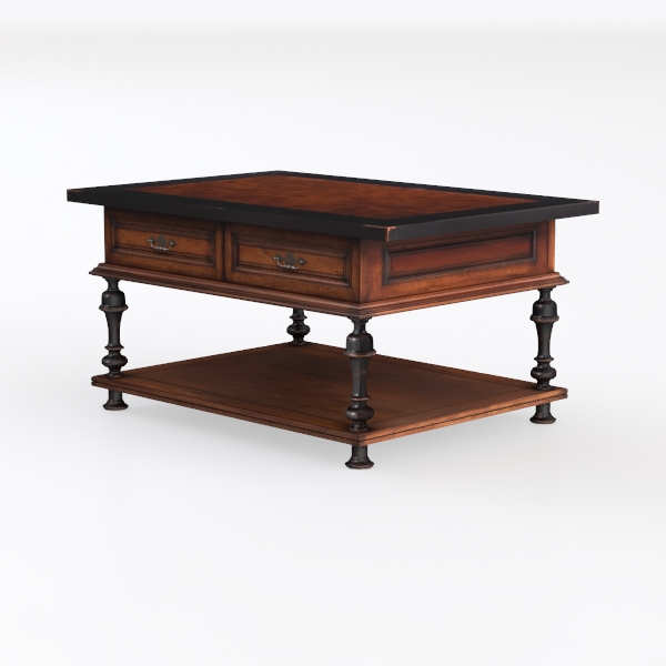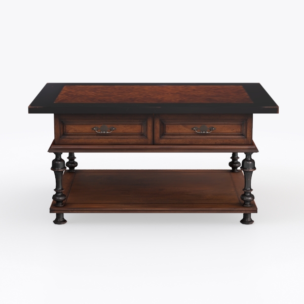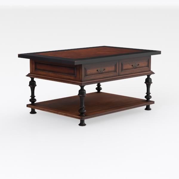 Crafted with inspiration from classic European furniture, this table blends timeless charm and practicality. Its rich, warm wood grain feels smooth to the touch, while the dark marble-like top contrasts elegantly with ornate, turned legs. Two functional drawers offer hidden storage, and the lower open shelf adds depth, making it ideal for a traditional living room—pair with leather sofas and antique brass accents for a cohesive, vintage look.