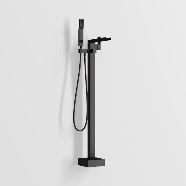 Hoimpro Tub Filler Freestanding Bathtub Faucet Matte Black Floor Mount Tub Faucet Waterfall Free Standing Bathtub Filler High Flow Brass Bath Shower Faucets with Handheld Sprayer