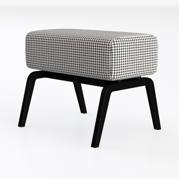 Drawing inspiration from the enduring charm of houndstooth patterns, this bench reinterprets a classic motif through a contemporary lens, blending timeless elegance with modern simplicity. The seat, upholstered in a soft, subtly textured fabric, features a crisp black-and-white houndstooth print that creates a striking, graphic contrast against a clean backdrop, while the sleek, tapering black legs add a touch of understated sophistication, grounding the piece with minimal, elegant lines. Visually, its balanced proportions and monochromatic palette make it a versatile statement, whether in a minimalist living room, a cozy bedroom, or an entryway.