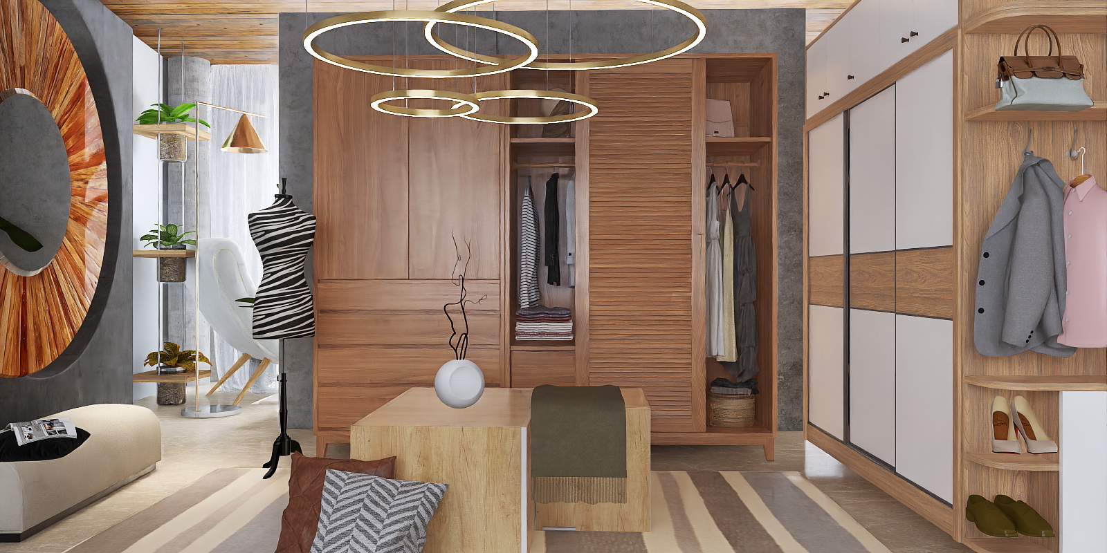 Rooted in natural simplicity, this wooden wardrobe features warm oak with smooth, grainy textures—soft to the touch, brightening spaces with clean lines and open compartments. Ideal for modern Scandinavian bedrooms, pairing with marble nightstands and linen bedding. Ample drawers and hanging rods provide organized storage, blending style and practicality.