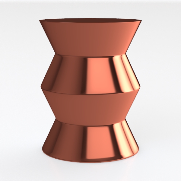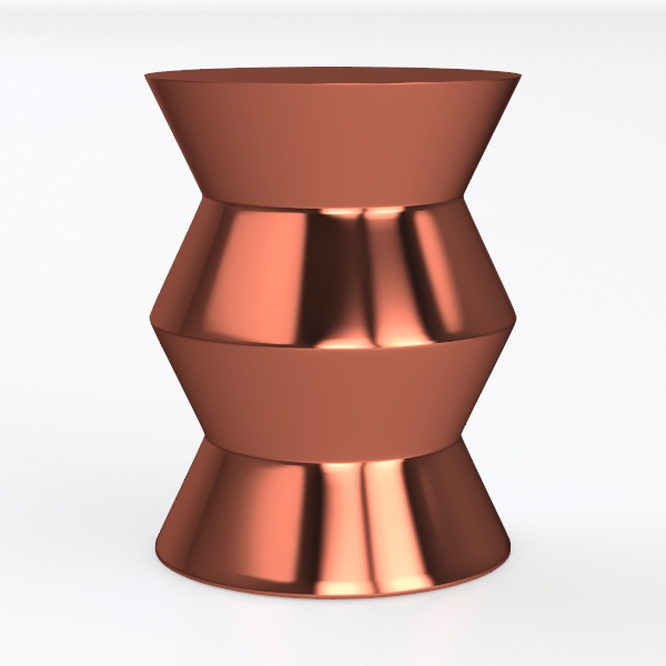 Inspired by mid-century modern geometric forms and artisanal metalwork, this copper-hued side table features a polished metallic finish. Its smooth, curved layers catch light beautifully, adding warm depth and a luxe touch. Perfect for modern minimalist or contemporary spaces, it pairs well with marble or glass-top coffee tables and soft textiles. A stable, compact design fits tight corners or beside sofas, ideal for drinks, books, or decor.