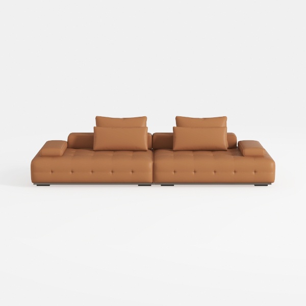 Rooted in Scandinavian design philosophy, this sofa draws inspiration from the balance of minimalism and tactile warmth, aiming to create a space that feels both open and nurturing. Its rich caramel-brown upholstery features a subtle, textured weave—smooth to the touch yet with enough depth to catch light softly, while tufted details along the backrest add refined texture without cluttering the clean, flowing lines. Visually, the low-profile silhouette and integrated armrests give it a modern, uncluttered presence, making it a calm anchor for any living room.