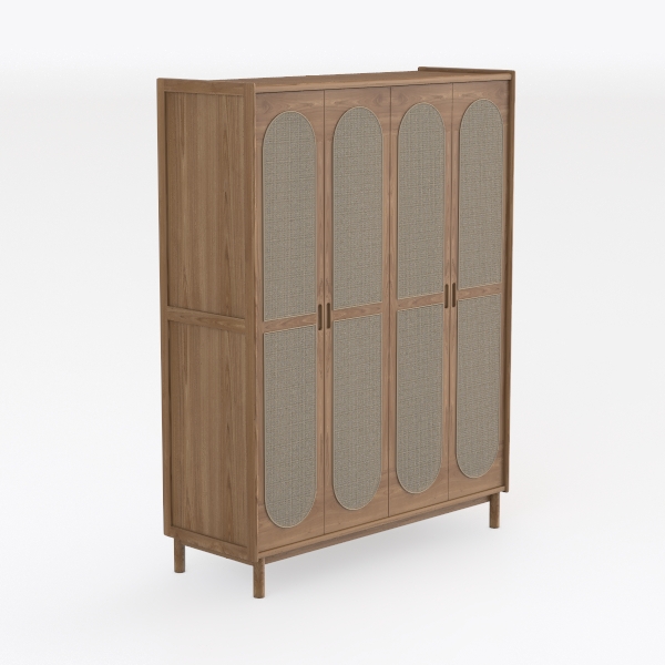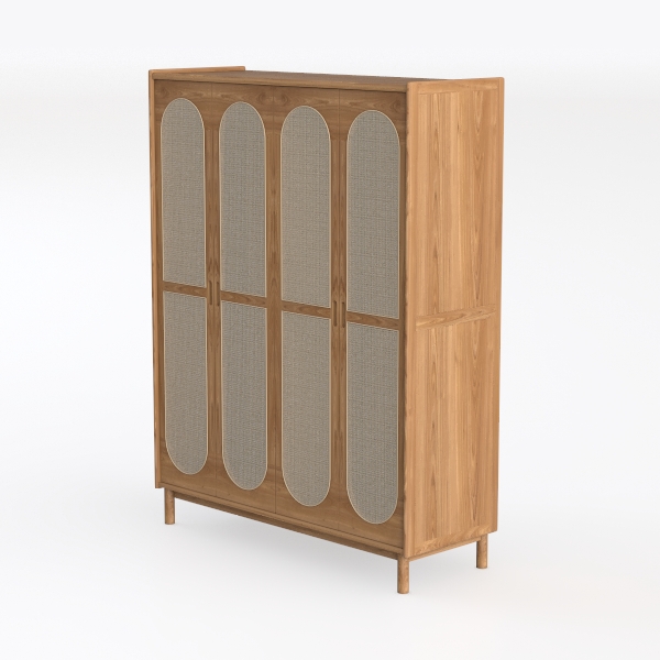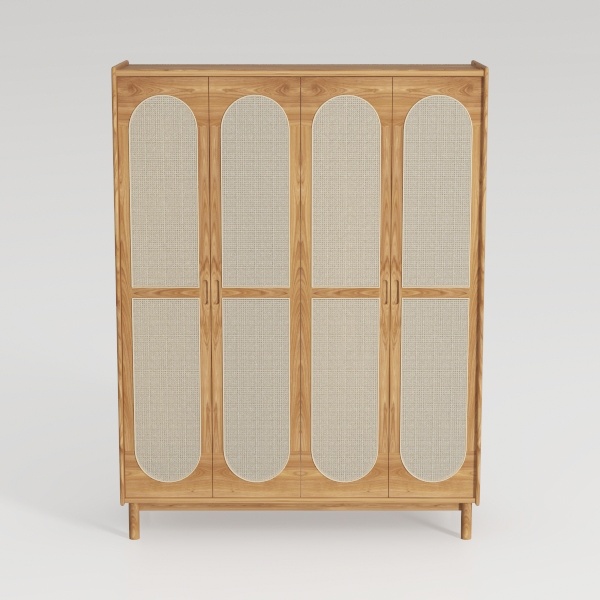 Inspired by natural organic curves and traditional weaving craftsmanship, this piece features warm wood texture, woven rattan patterns, creating a light and airy visual feel with a warm, harmonious vibe. Ideal for modern Nordic or Japanese-style living rooms or bedrooms, it pairs well with linen sofas and potted greenery. Spacious storage space and slender legs ensure both functionality and easy cleaning.