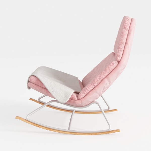 Ideal for modern minimalist or Scandi-inspired spaces, it shines in a cozy bedroom nook or a sunlit living room corner. Pair it with a marble side table for subtle sophistication, sheer linen curtains to filter soft light, and a small potted fern to bring a hint of greenery, creating a calm, nurturing atmosphere. The ergonomic curved backrest supports the spine, while the wide, gently sloped seat encourages deep relaxation—perfect for curling up with a book, sipping tea, or simply letting the rocking motion carry you into a peaceful state. Every detail, from the soft blush hue to the smooth wood and metal interplay, makes this chair not just a piece of furniture, but a warm, welcoming retreat.
