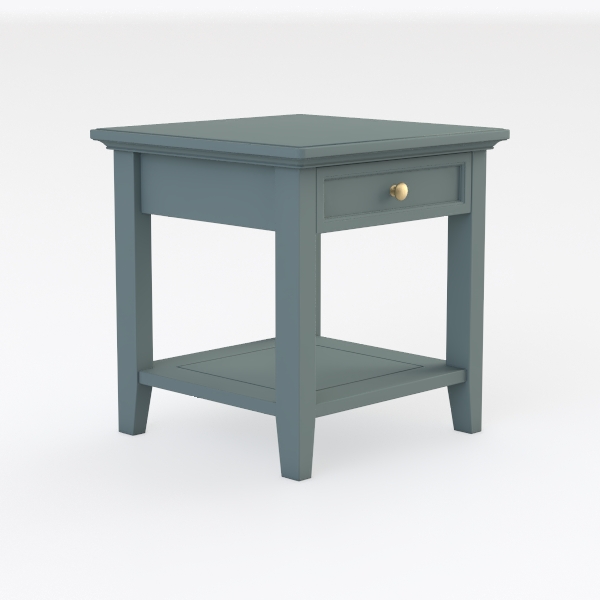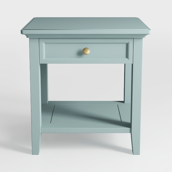 Inspired by soft coastal hues and mid-century simplicity, this piece blends calm blue tones with warm wood undertones. Its smooth, matte surface and curved edges create soft tactile/visual appeal, while the polished gold knob adds subtle luxury. Ideal for a serene bedroom, complementing minimalist beds or Scandinavian decor. A small drawer stores bedtime essentials, and a lower shelf holds a lamp or books, balancing style and utility.