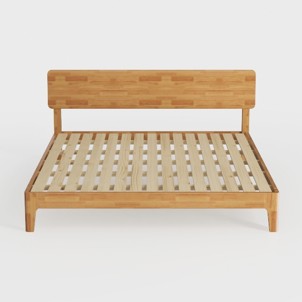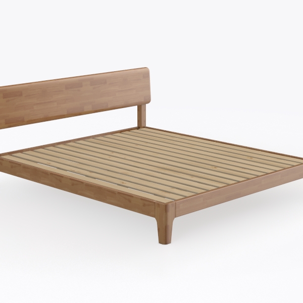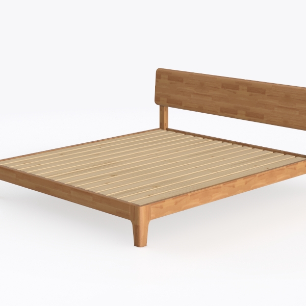 Crafted with inspiration from minimalist Scandinavian design, this wooden bed features a light oak finish with warm wood grain, offering a smooth, tactile surface that blends nature and simplicity. Its clean lines make it perfect for a serene bedroom, pairing beautifully with linen bedding and potted greenery to enhance a calm, modern aesthetic. A sturdy slatted base ensures breathability and support, ideal for restful nights.