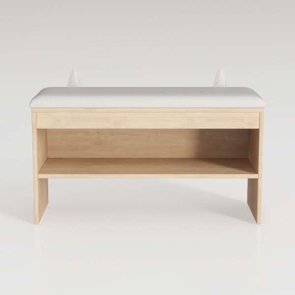 Inspired by minimalist Scandinavian design, it merges warm natural textures with sleek lines. Light oak wood frame offers smooth, tactile warmth, while soft off-white upholstery adds gentle comfort and crisp contrast. Perfect for entryways or living rooms, it pairs beautifully with neutral sofas and marble accents, and the lower open shelf delivers handy storage, balancing style and utility seamlessly.
