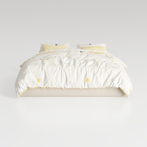 Inspired by the softness of starry skies and fluffy clouds, this bedding set features a lightweight, breathable fabric that feels gentle against the skin. The crisp white base with delicate cloud and star motifs creates a bright, airy look, while the relaxed drape ensures a cozy, restful night. Ideal for a kids' bedroom or serene master suite, it pairs beautifully with wooden furniture and soft fairy lights, enhancing its dreamy charm.