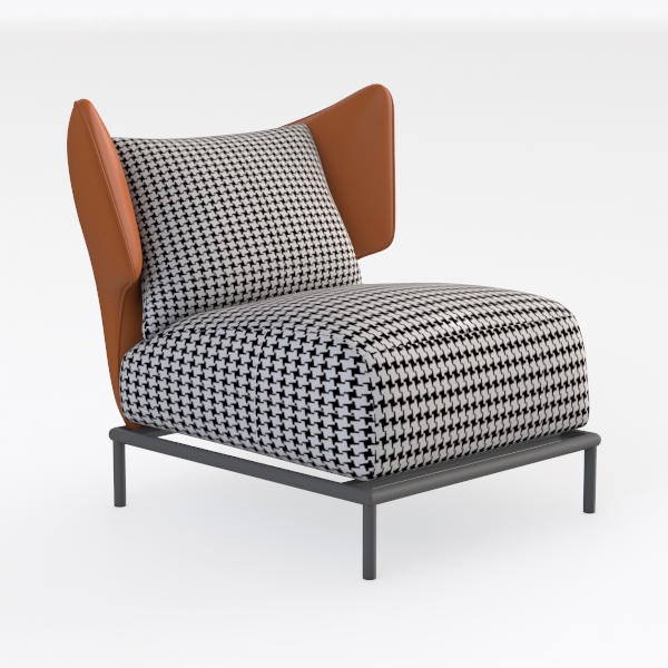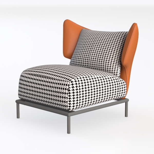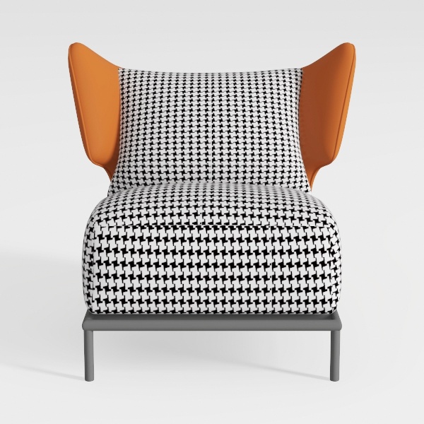 Drawing inspiration from timeless houndstooth patterns, this armchair merges classic geometric elegance with modern simplicity. The soft, textured black-and-white upholstery offers a crisp, tactile feel, while warm orange armrests add a lively contrast, balancing coziness and sleekness. Perfect for modern minimalist or Scandinavian living rooms, pair with marble coffee tables and metal lamps. A deep, wide seat ensures exceptional comfort for reading or relaxing.