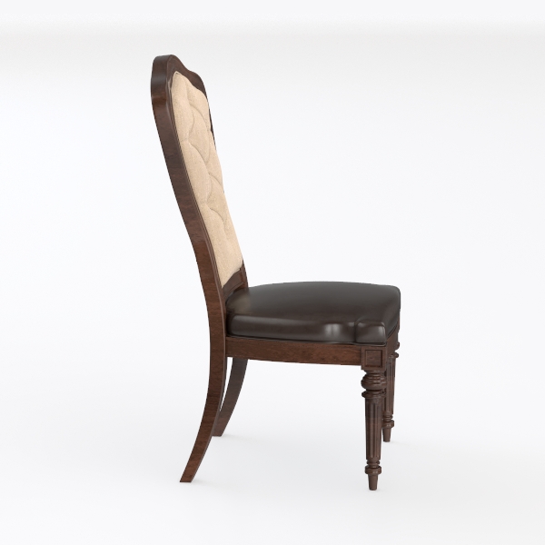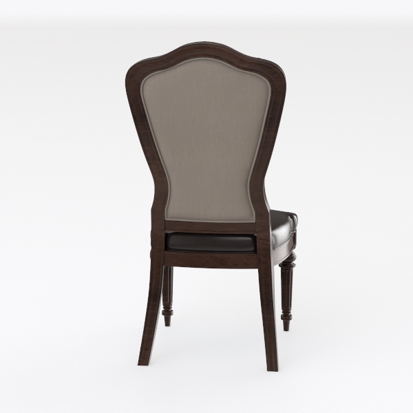 This vintage-inspired chair takes cues from classic European craftsmanship, featuring smooth, warm brown wood with细腻 grain, a soft beige fabric backrest, and rich dark leather seat. Its elegant curved back and sturdy, carved wooden legs exude timeless charm. Perfect for traditional dining rooms, it pairs beautifully with solid wood tables, offering ergonomic support and lasting stability.