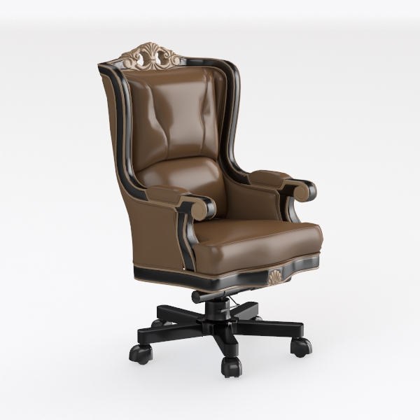Inspired by classic 18th-century craftsmanship, this armchair features smooth, supple brown leather with a glossy finish, complemented by intricate gold carvings and sleek black accents. Its timeless design makes it ideal for a sophisticated home office or opulent living room, blending vintage charm with modern utility—ergonomic deep seat for comfort, and smooth-rolling casters for easy movement.