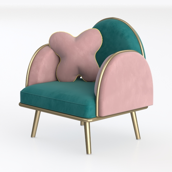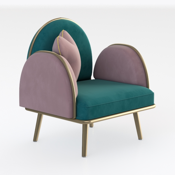 This armchair merges vintage allure with modern warmth, designed to infuse personality into any room. Its aesthetic draws subtly from nature’s soft hues—evoking the rich, iridescent blue-green of polished jade—and Art Deco’s timeless elegance, balancing boldness with softness through a thoughtful color story of teal, blush pink, and gold.