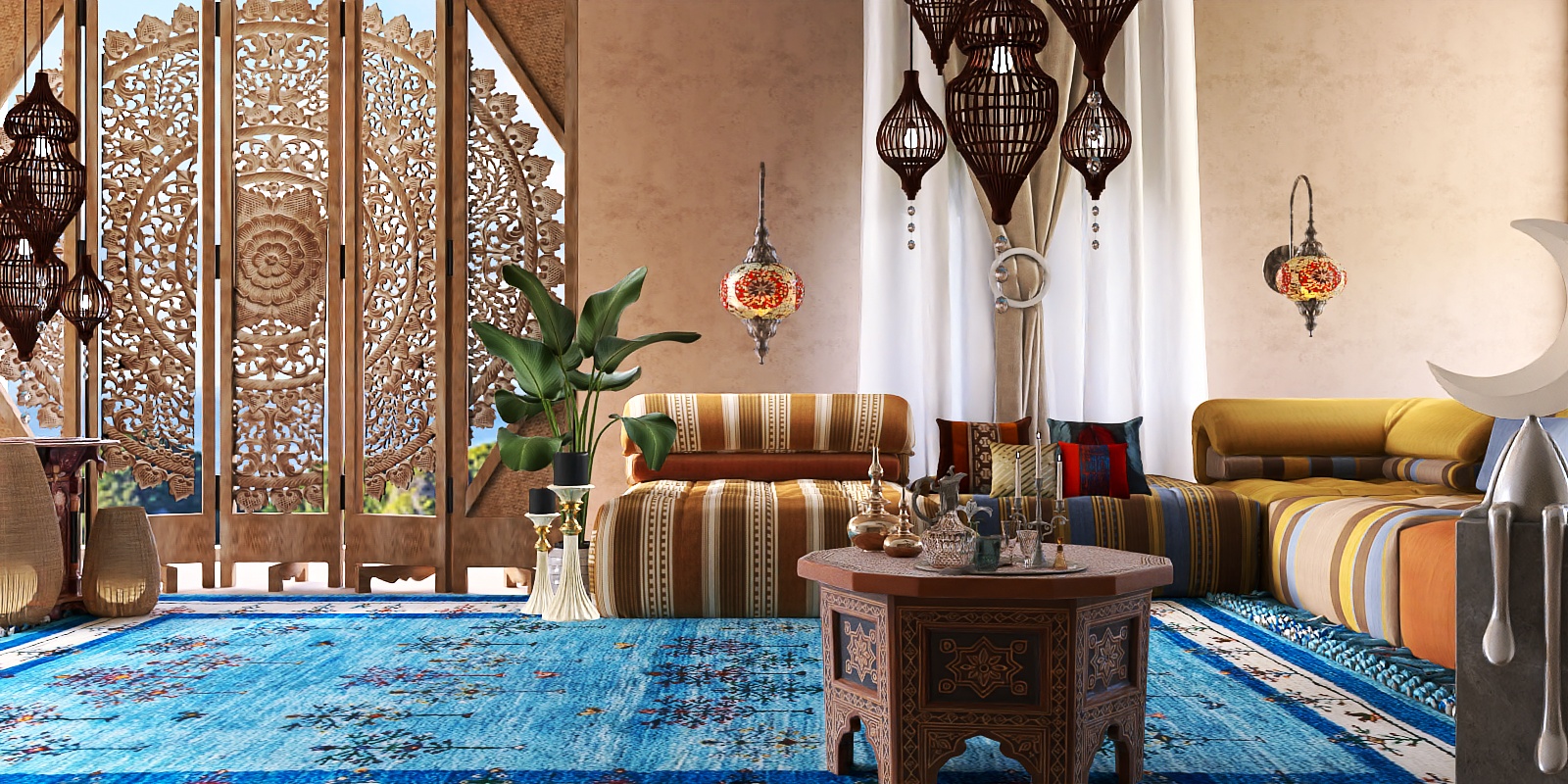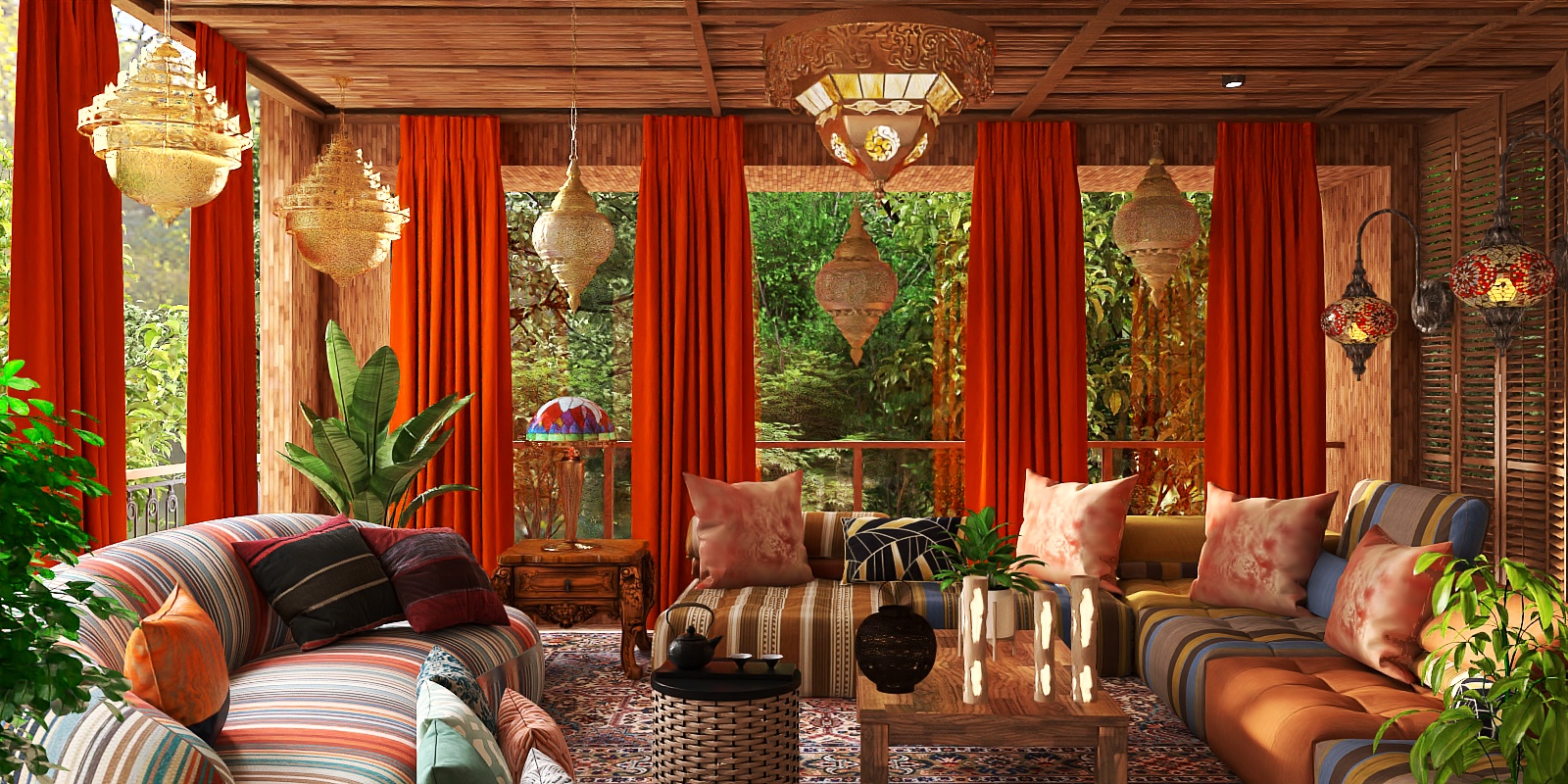 This modular seating collection blends mid-century modern charm with playful versatility, taking cues from 1970s design movements—think bold geometric patterns and functional flexibility. Warm, earthy tones like terracotta, mustard, and sky blue interweave with crisp, striped upholstery, creating a visually dynamic yet cohesive look that feels both nostalgic and fresh.