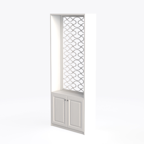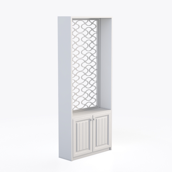 Design inspired by flowing water, this white partition blends modern minimalism with soft grace. Smooth, matte surfaces contrast the delicate, cut-out wave patterns above, creating a light, airy vibe. Ideal for a contemporary living room or entryway, pair with neutral decor and warm lighting to highlight its clean lines. The dual-door cabinet below offers hidden storage, balancing elegance with practicality.