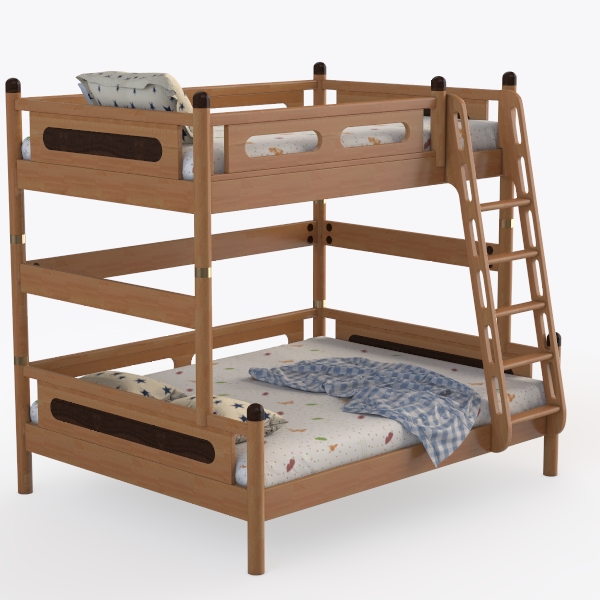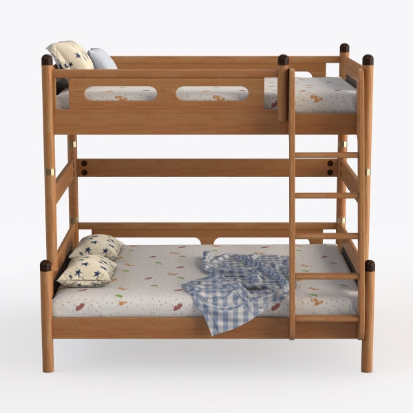 Designed to blend family warmth with space efficiency, this wooden bunk bed features smooth, warm wood grain surfaces and clean, light lines. Its soft, inviting tones pair perfectly with light walls and playful decor, ideal for children’s rooms or compact family spaces. Sturdy rails and a slatted base ensure safety, while the under-bed area offers hidden storage, balancing style and practicality.