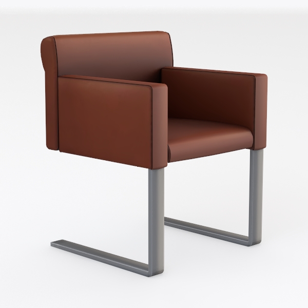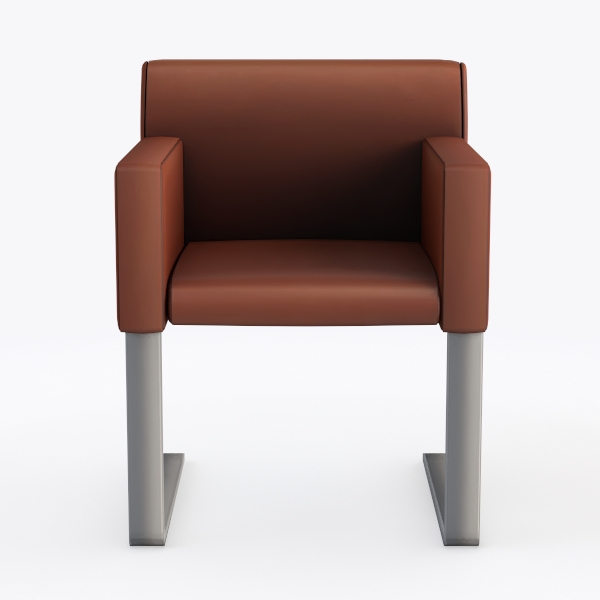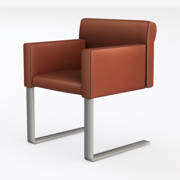 This armchair merges minimalist elegance with tactile sophistication, rooted in a design philosophy that celebrates geometric precision and material contrast. Its warm, chestnut-brown upholstery features a smooth, slightly matte leather-like texture—soft to the touch yet structured, it offers gentle give while maintaining a polished silhouette. The chair’s angular metal legs, crafted from brushed stainless steel, add a cool, contemporary edge, their "V" shape lightening the overall look and creating a striking visual balance with the rich, earthy tones of the seat.