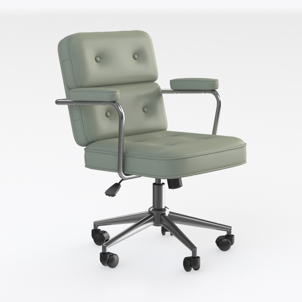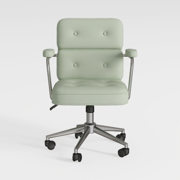 Inspired by mid-century modern aesthetics, blending retro warmth with contemporary sleekness. The soft, tufted light green upholstery feels plush and smooth, while the polished metal frame and base add a refined touch. Its crisp, fresh look brightens modern minimalist home offices, pairing perfectly with wooden desks and geometric rugs. Adjustable height and smooth-rolling casters ensure effortless movement, making it ideal for long, comfortable workdays.