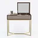 Elegantly merging timeless allure with contemporary minimalism, this dressing table features smooth, warm wood surfaces and sleek, polished metal legs, exuding refined luxury. A lift-top mirror and roomy drawers offer ample storage for beauty essentials, perfect for a modern luxury bedroom paired with soft textiles and marble accents.