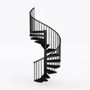 A modern spiral staircase designed with sleek black metal steps and railings, featuring 49960 polygons for versatile contemporary interior spaces.