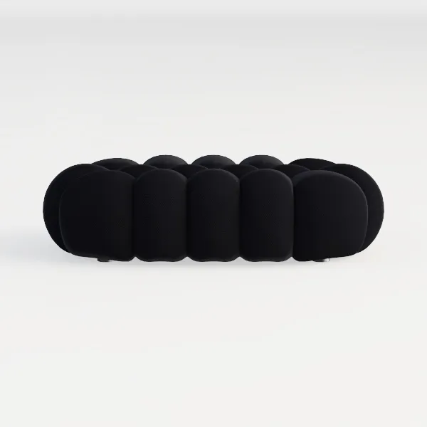 Inspired by mid-century modern design, this sofa bed features a velvety black upholstery with subtle tufted texture, soft yet structured to the touch. Its clean lines and sleek metal legs create a minimalist aesthetic, perfect for modern or Scandinavian living rooms. The spacious seat depth offers ultimate comfort, while its dual-purpose design makes it ideal for daily lounging or accommodating overnight guests, paired with light wood coffee tables and geometric rugs.