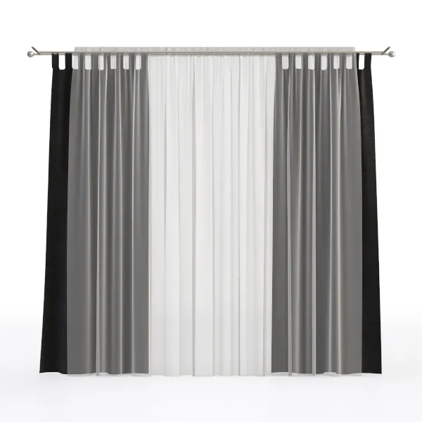 A 3D model of a Double Curtain, featuring double-layered textile with black, gray, and white neutral tones, and a minimalist modern aesthetic. It has highly detailed textures and is suitable for home decor and interior design.