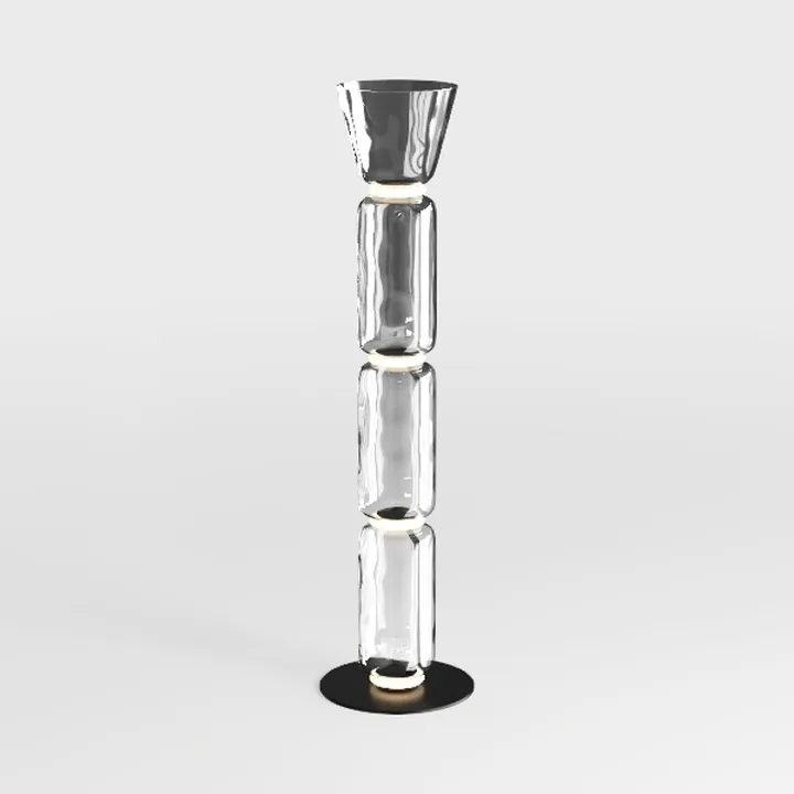 A 3D model of a Floor Lamp, featuring a curved metal stand and white pleated lampshade with a minimalist modern aesthetic. It has highly detailed design and is suitable for living rooms, bedrooms, or reading nooks.
