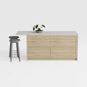 Inspired by nature and minimalism, this piece merges soft wood tones with sleek surfaces. The warm, textured wood grain contrasts gently with the smooth, light countertop, while a potted plant adds fresh greenery. Ideal for modern minimalist or Scandinavian kitchens, dining nooks, or living areas, it pairs beautifully with metal accents and warm lighting. Ample cabinet storage hides essentials, and the compact design maximizes space without sacrificing style or comfort.