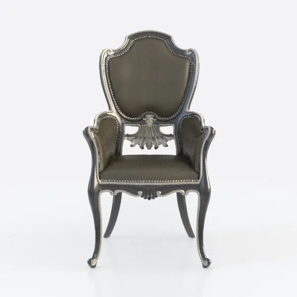 This elegant armchair embodies a harmonious blend of traditional artistry and modern design sensibilities. Drawing cues from 18th-century Baroque and Rococo aesthetics, its design reimagines classic motifs with a contemporary twist, making it a statement piece that bridges past and present.